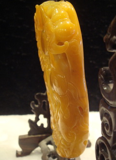 黄龙玉最初人称黄蜡石。在当地人看来,它有着田黄般的颜色、翡翠的硬度,与和田玉等软玉相比,硬度更好、透度更高、色彩更鲜艳丰富。由于其产在龙陵,又以黄色为主色,故最终得名为黄龙玉,也有人称为龙黄玉。