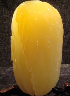黄龙玉最初人称黄蜡石。在当地人看来,它有着田黄般的颜色、翡翠的硬度,与和田玉等软玉相比,硬度更好、透度更高、色彩更鲜艳丰富。由于其产在龙陵,又以黄色为主色,故最终得名为黄龙玉,也有人称为龙黄玉。
